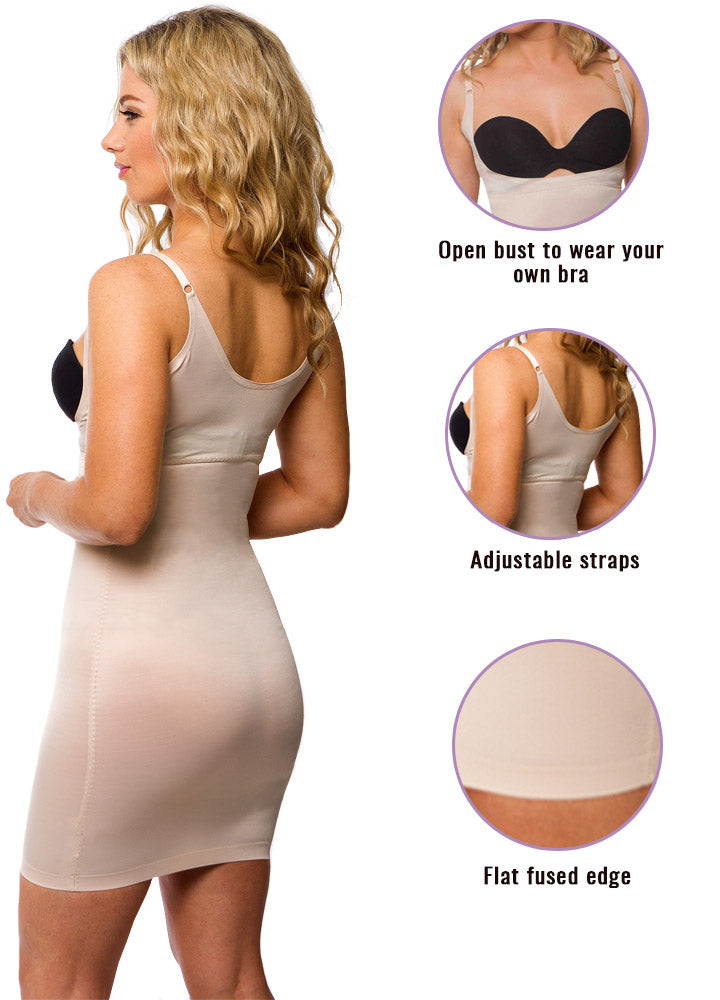 • Open bust design so you can wear your own favorite bra